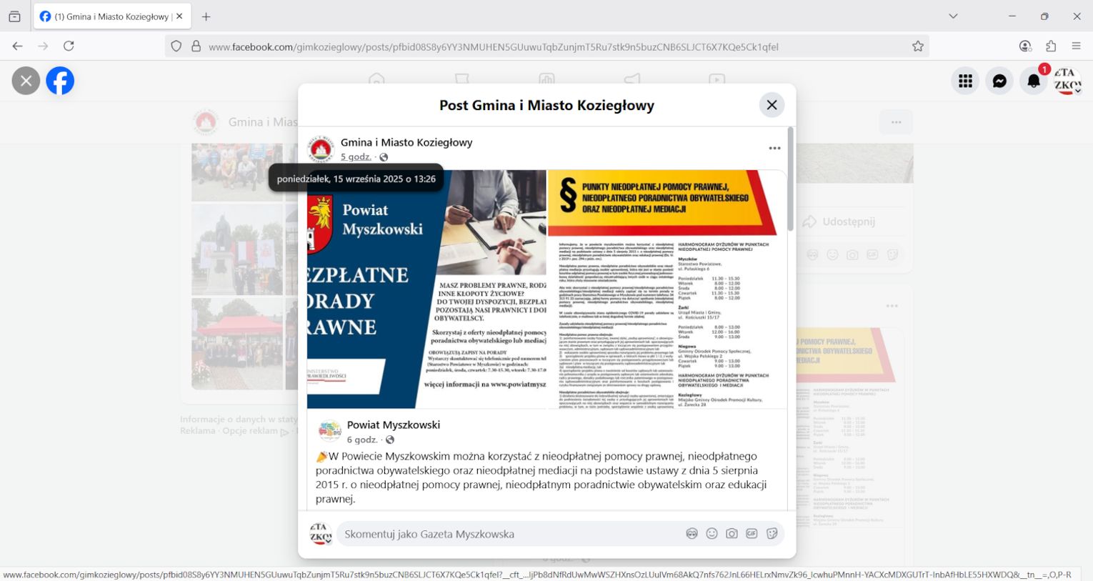 "W Powiecie Myszkowskim można korzystać z nieodpłatnej pomocy prawnej, nieodpłatnego poradnictwa obywatelskiego oraz nieodpłatnej mediacji na podstawie ustawy z dnia 5 sierpnia 2015 r. o nieodpłatnej pomocy prawnej, nieodpłatnym poradnictwie obywatelskim oraz edukacji prawnej." -pisze Starostwo Powiatowe w Myszkowie w komunikacie z 15 sierpnia 2025. Jeden fragment jest jednak zaskakujący, na co zwrócił uwagę nasz Czytelnik: