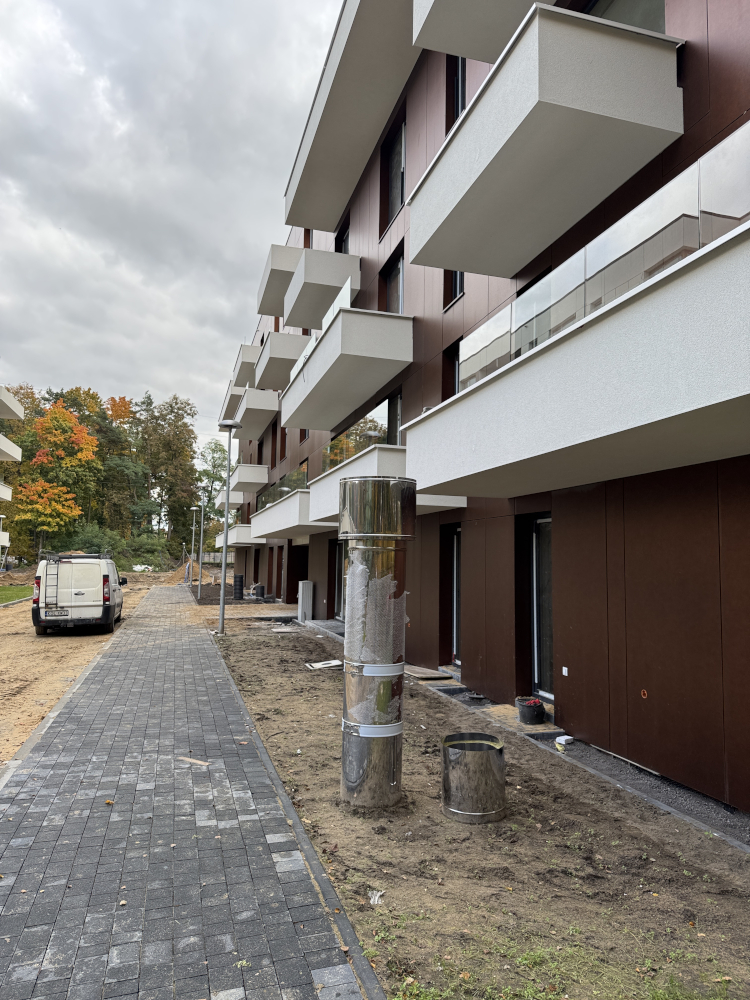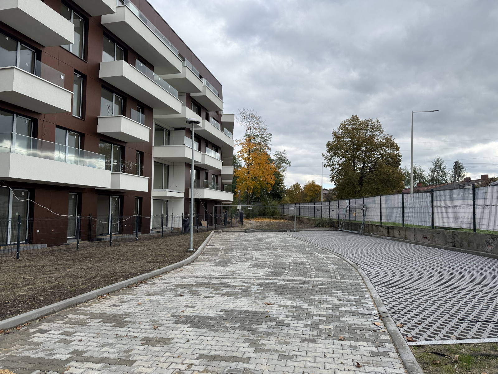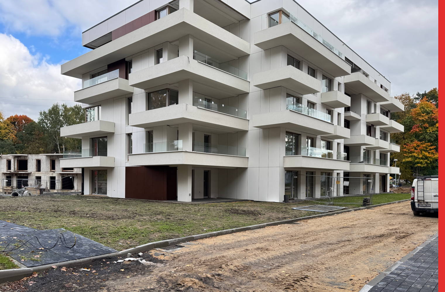 Prezes DHD Sebastian Sołtys: -Udało się dokończyć otoczenie budynków B i C, przyśpieszyły prace wykończeniowe, niewidoczne z ulicy. Te dwa budynki mają ogrzewanie pompą ciepła i ta instalacja też jest dokończona. Wspólnie z RPWiK projektujemy budowę wodociągu, który ma zasilić bloki, gotowa jest instalacja sanitarna wewnętrzna, a instalacje zewnętrzne są na ukończeniu. Obecnie przyszłych mieszkańców informujemy, że jeśli chodzi o część budowlaną, wykończenie budynków B i C oraz odbiory techniczne, możliwe byłoby przekazanie im mieszkań na przełomie stycznia/lutego 2026. Z tym zastrzeżeniem, że akty notarialne o przeniesieniu własności mieszkań na inwestorów jest będzie możliwe, jeżeli Sąd zarejestruje zmiany w Zarządzie. Ja, choć wykonuję w imieniu spółki szereg czynności, podejmuję decyzje i co najważniejsze, płacę wykonawcom robót, to nie mogę stanąć do aktu notarialnego w imieniu spółki i przenieść własność mieszkania na nowego właściciela.