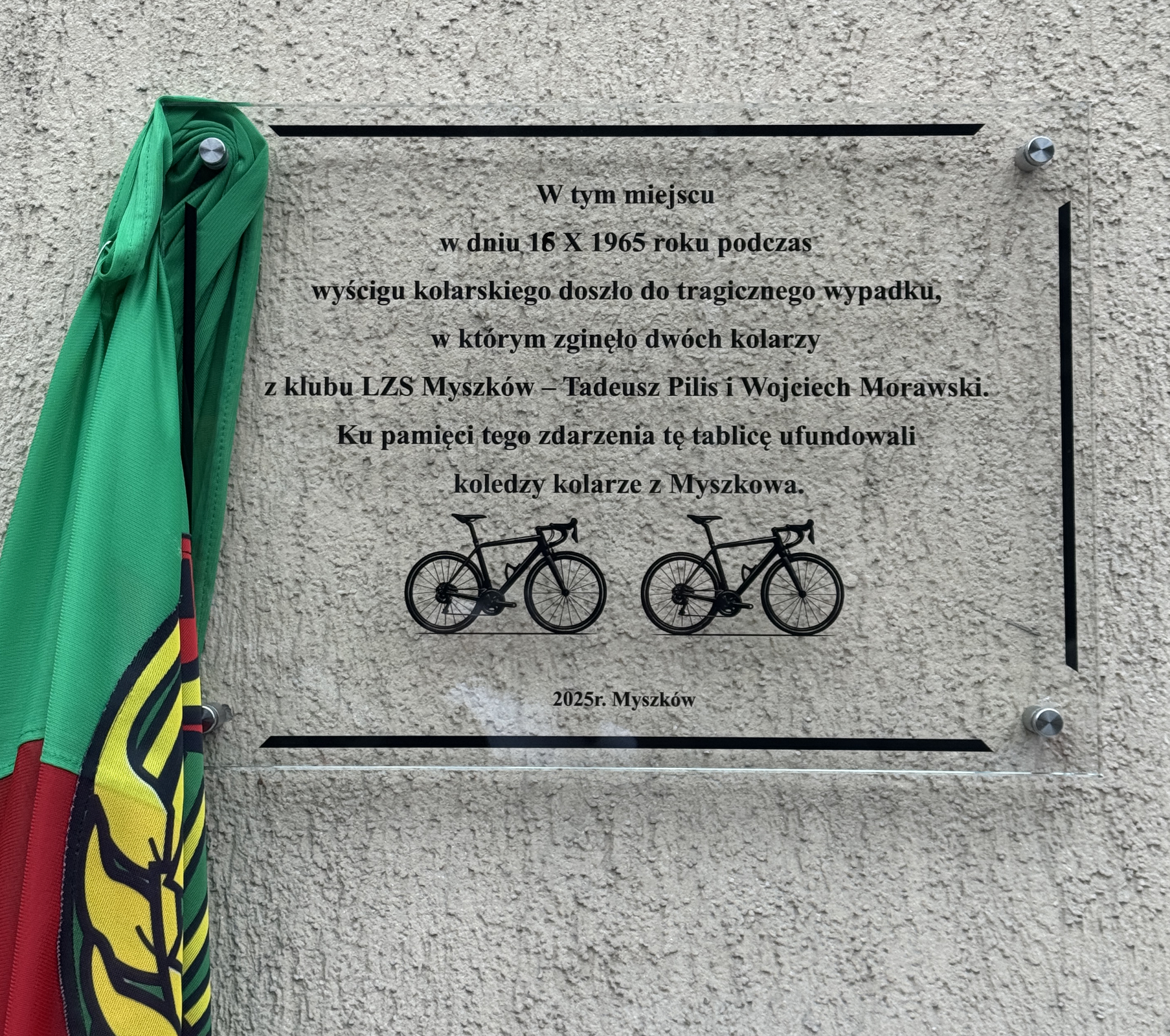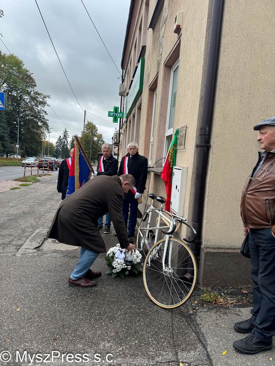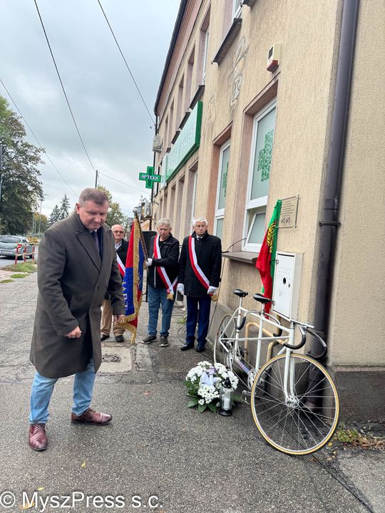 Zbliżała się już 60 rocznica zapomnianej tragedii, gdy świadek tego wypadku, również w młodości kolarz LZS Myszków Tadeusz Garncarz wspomniał zdarzenie swojemu synowi Romanowi Garcarzowi (też zawodnik kolarski przez część życia). Z kolei pan Tadeusz Garncarz dzisiaj odnosi sukcesy jako kolarski senior. Z z rozmowy ojca z synem zrodził się pomysł upamiętnienia wypadku z 16 X 1965 roku poprzez umieszczenie tablicy pamiątkowej. Ta została za zgodą właściciela budynku umieszczona a uroczyście odsłonięta 9 X 2025 roku. Tablica zawisła na budynku apteki przy ulicy Kościuszki. Miejsce historyczne znane też jako siedziba LOK, gdzie uprawnienia do prawa jazdy zdobywały pokolenia kierowców.