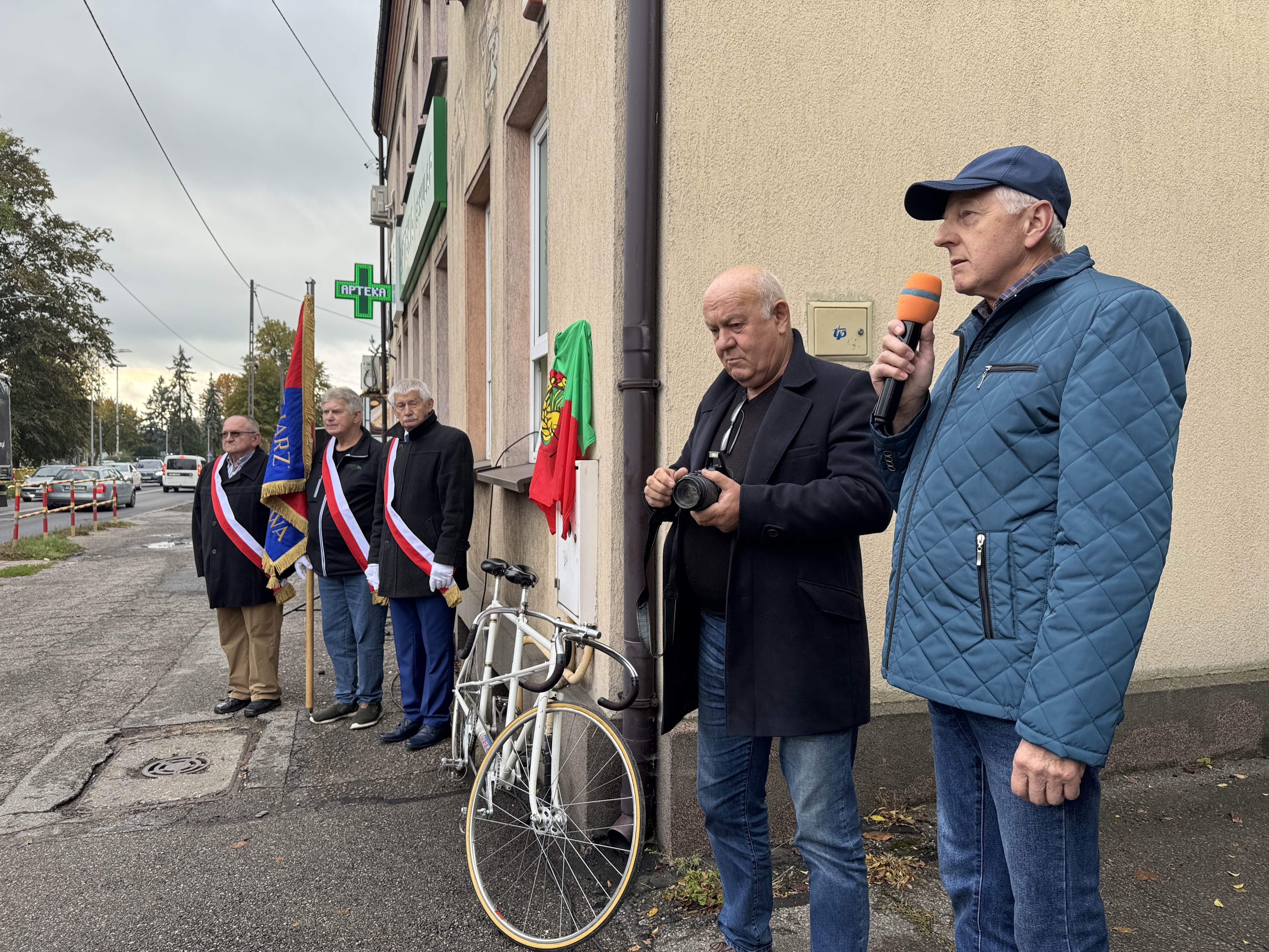 Przy odsłonięciu tablicy byli uczestnicy tego tragicznego wyścigu z Częstochowy: Marek Gemblicz, Adam Jaworski, Edward Płaza.
