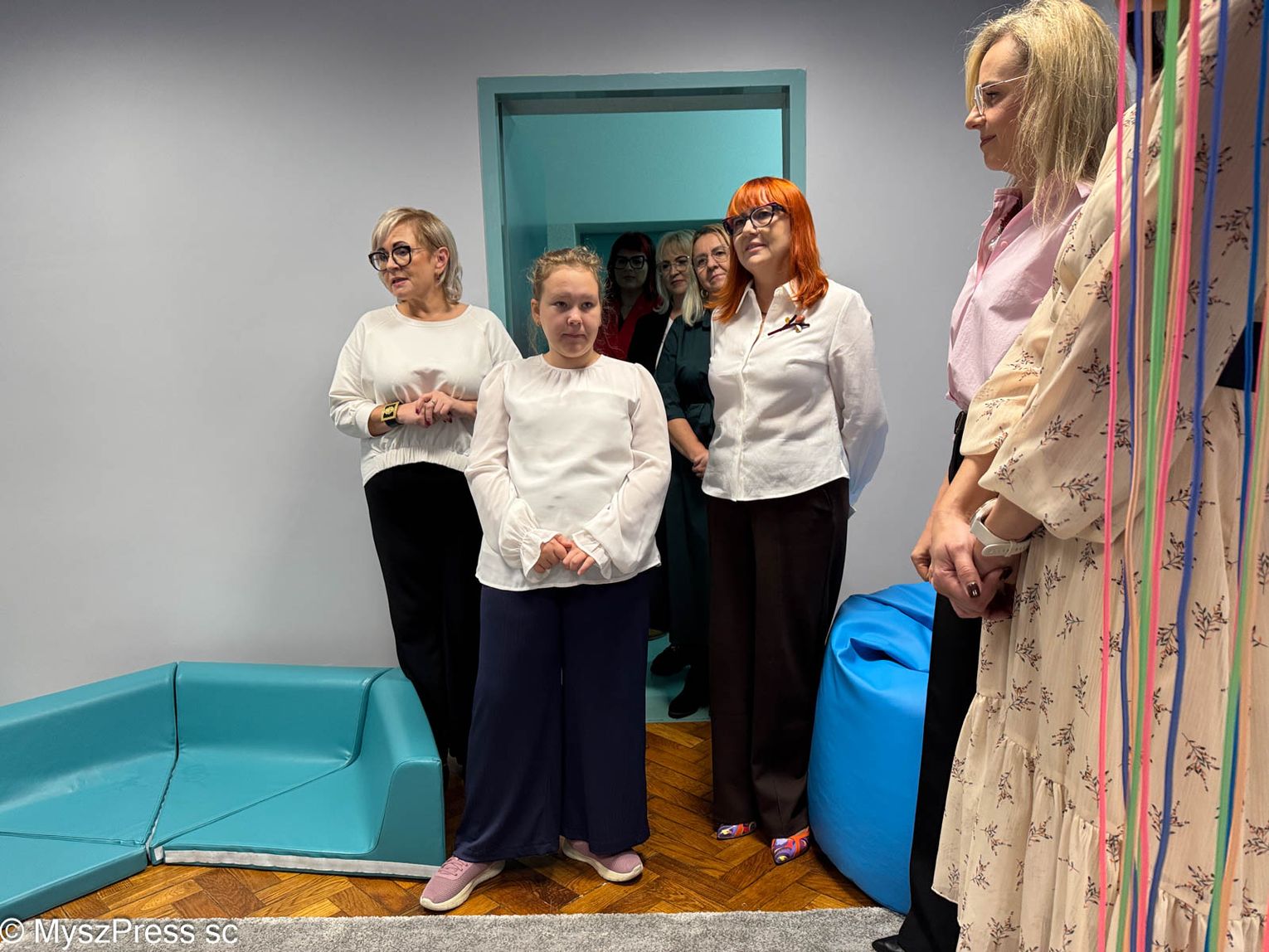 Przecięcia wstęgi dokonała Amelka, uczennica szkoły w spektrum autyzmu. Gdy już weszliśmy do sali Amelka też wybrała swoje ulubione miejsce i tam się położyła.