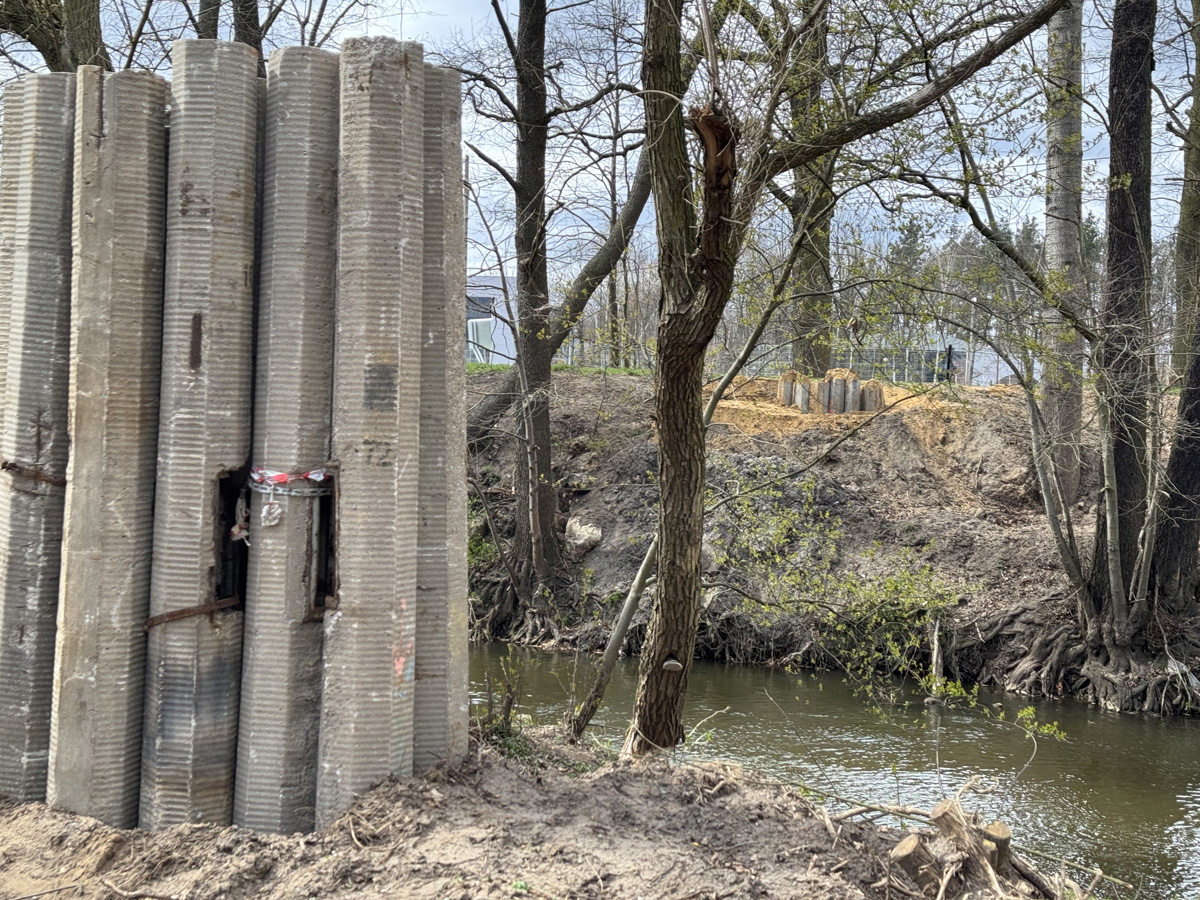 -urzędnicy zauważyli nawet, że powstało coś jak zalążek mostu, kładki przez Wartę. Tak to opisali: "stwierdzono również wykonanie pionowo zakopanych słupów betonowych po obu stronach rzeki, które prawdopodobnie stanowić miały przyczółki kładki. (...) Na niedokończonym fragmencie wyniesienia (podwyższenia terenu-red) znajdowały się kostki betonowe, dreny betonowe, zbriojne odpady budowlane oraz elementy rur PCV."