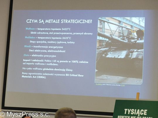 Ja chętnie powiem o tym co już możemy obiecać mieszkańcom Myszkowa, na etapie starań o koncesję badawczą. Jeżeli ją uzyskamy, to siedzibę spółki przeniesiemy do Myszkowa, wynajmiemy tu biuro. Lokalny biznes będzie zarabiał na usługach przy wierceniach. Potrzebne będą noclegi, usługi transportowe. Budowa i praca kopalni to korzyści podatkowe dla Myszkowa które w ostrożnie szacujemy na 30 mln zł rocznie, przy założeniu mniejszego wydobycia 20 tys ton/rocznie. Ale szacujemy wydobycie kilka razy większe. Bogdanka, gdzie byłem prezesem przez ponad rok, to największy mecenas sportu i kultury na lubelszczyźnie. KGHM ma zwoje Miedziowe Centrum Zdrowia, czyli szpital leczący całą okolicę. Padło pytanie o zatrudnienie, że przykłady kopalni wolframu np. ta z Austrii nie generują takiego zatrudnienia, jak mówimy, sięgającego 1000 osób. W Austrii są podawane liczby pracowników tylko zakładu wydobywczego, a biura, cała reszta jest gdzie indziej. My przewidujemy, że jeżeli kopalnia powstanie w Myszkowie całość: biura, pralnie, stołówka, dział handlu. Kopalnia będzie potrzebowała na powierzchni kilkudziesięciu hektarów, ale największy będzie parking. Około 400 pracowników na zmianie musi dojechać, a po pracy zjeść. W podobnych zakładach dwa piętra zajmują łaźnie, do tego stołówka. To jakby spory dom weselny trzy razy dziennie wydawał obiady na weselu. Kopalnia to rozwój lokalnych usług, od transportu po catering. Na procesie budowy kopalni zarabiają firmy budowlane i inne. Budowa kopalni to inwestycja przynajmniej na 4 mld zł. Gdyby tylko 10% trafiło na lokalny rynek, jest to 400 mln złotych.