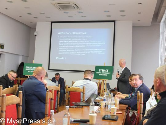 Kasjan Wyligała: -Możemy przygotować szczegółową listę usługi branż, żeby lokalny biznes mógł się przygotować. Mówiłem o zatrudnieniu na poziomie 1000 osób, w kontekście do kopalni w Portugalii i Austrii, gdzie jest ono sporo niższe. Tam najciekawsze miejsca pracy, białe kołnierzyki nie pracują przy kopalni. My zrobimy inaczej. Tu w Myszkowie będzie wszystko. Teren jest ładny, atrakcyjny przyrodniczo, a nieruchomości tańsze. Z pewnością kopalnia przyciągnie do Myszkowia wielu nowych mieszkańców.
