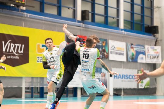Na początku drugiej części spotkania gospodarze zdobyli dwie brami. W kolejnych minutach gra się wyrównała, a po kwadransie drugiej części meczu był już remis 19:19. Kolejne minuty były bardzo wyrównane i przez długi czas wynik był bliski remisu. Dopiero w ostatnich minutach przy wyniku 25:27 CMC VIRTU VIRET Zawiercie zdobył cztery brami z rzędu nie tracąc przy tym żadnej wygrywając po niezwykle wyrównanym boju z MKS Olimpia MEDEX Piekary Śląskie 28:27.