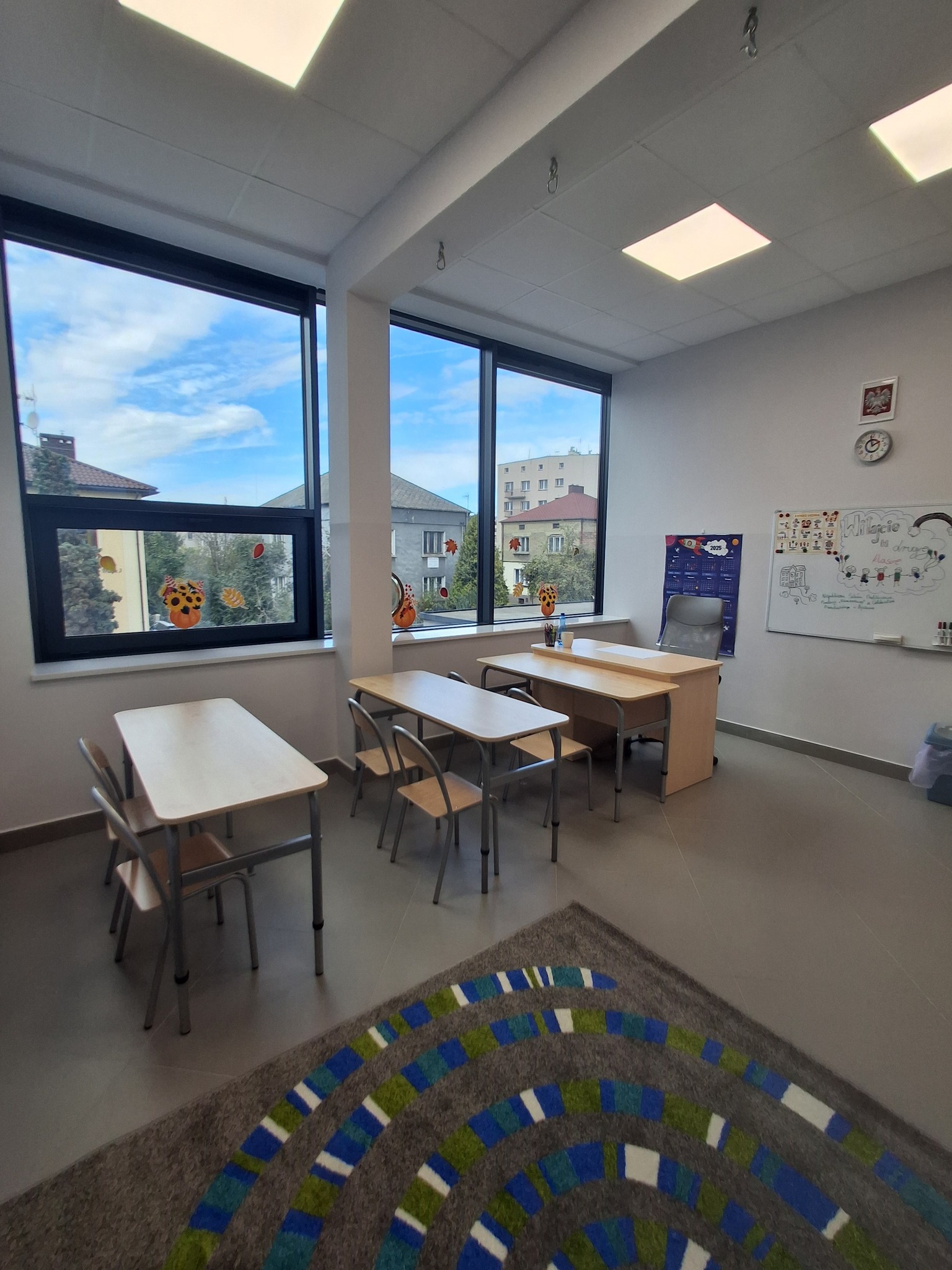 - Nowoczesne, jasne sale lekcyjne wyposażone w pomoce dydaktyczne, które wspierają aktywną naukę.