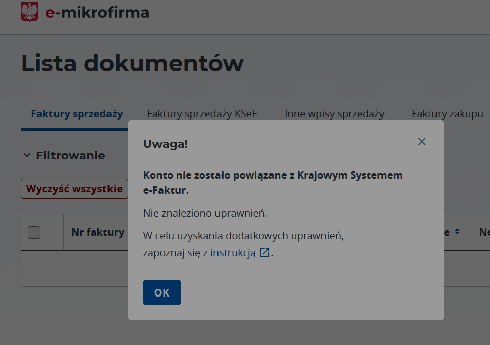 Pojawia się nowy komunikat: „twoje konto nie jest powiązane z ksef”. Nie jest? To po co je zakładaliśmy?
