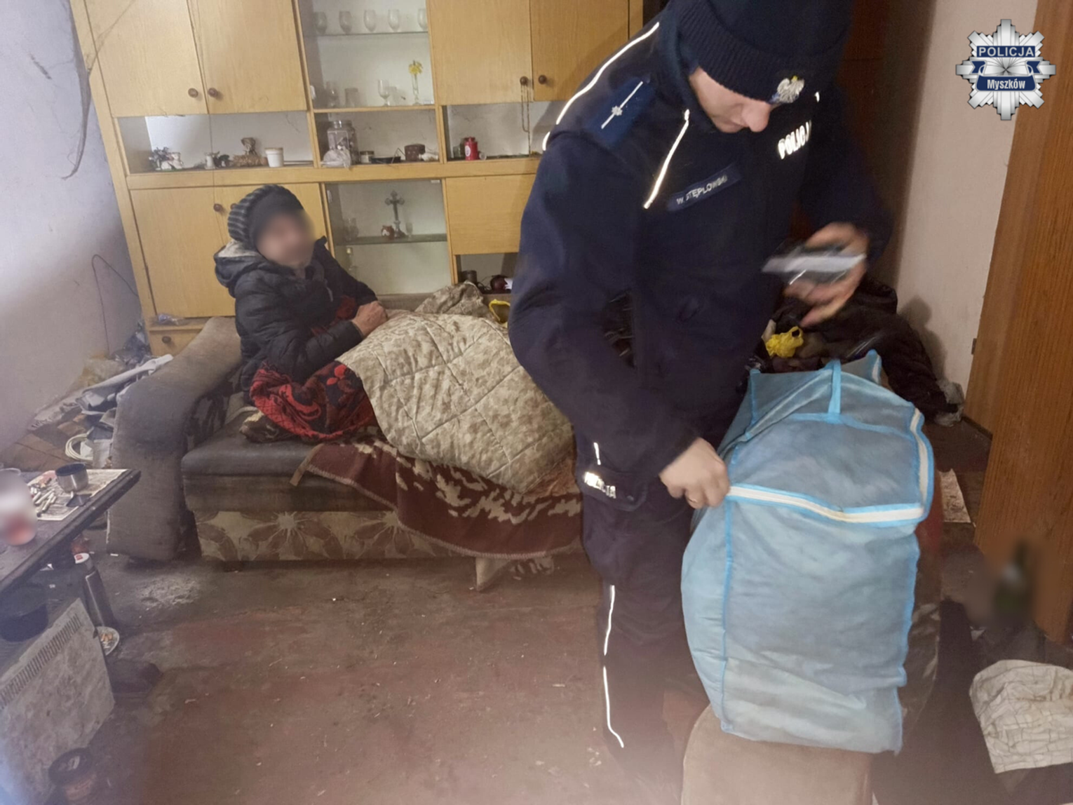 Podczas największych mrozów funkcjonariusz udzielał wsparcia osobom w kryzysie bezdomności, przekazując im w rejonie pustostanu ciepłą odzież, w tym kurtki, a także kołdry, informuje mł. asp. Klaudia Maladyn, oficer KPP w Myszkowie.