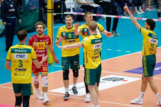 Aluron CMC Warta Zawiercie: Bołądź, Kwolek, Russel, Gladyr, Bieniek, Tavares, Popiwczak (libero) oraz Ensing, Łaba, Zniszczoł, Nowosielski. Trener: Michał Winiarski.