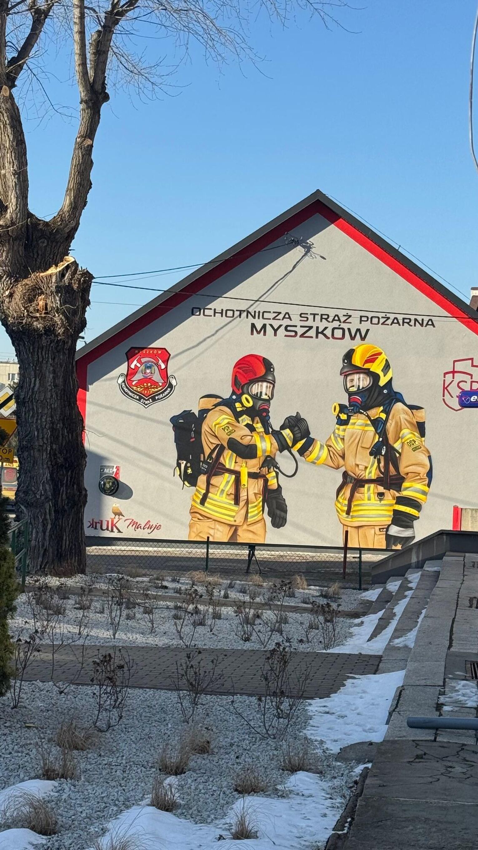Na szczególną uwagę zasługuje mural umieszczony na elewacji remizy, przedstawiający strażaka Państwowej Straży Pożarnej oraz Ochotniczej Straży Pożarnej. Autorem muralu jest kruK Maluje, który zajmuje się malowaniem artystycznym również wielkopowierzchniowych murali.