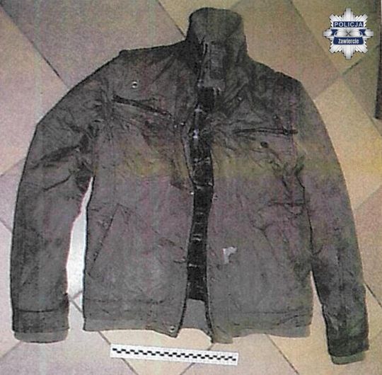 Ubrany był w: ciemnoszarą kurtkę w jasną kratę, zapinaną na guziki, jasnoniebieskie jeansy, szary sweter, zieloną koszulkę, czarne, sznurowane buty.