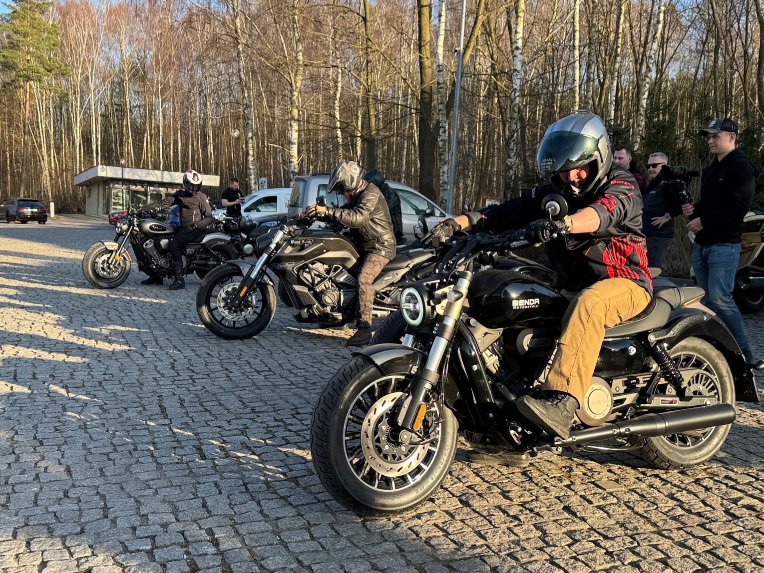 W Olsztynie trochę pooglądaliśmy, pogadaliśmy o motocyklach, również o tym, że może dystrybutor, czyli Romet udostępni nam nowe Bendy na test redakcyjny. Jesteśmy ciekawi tych motocykli. Benda produkuje cruisery i bobbery o małych i średnich pojemnościach silników. Znajdziemy więc w Benda motocykle 125 ccm (Chinchilla), 250 ccm.