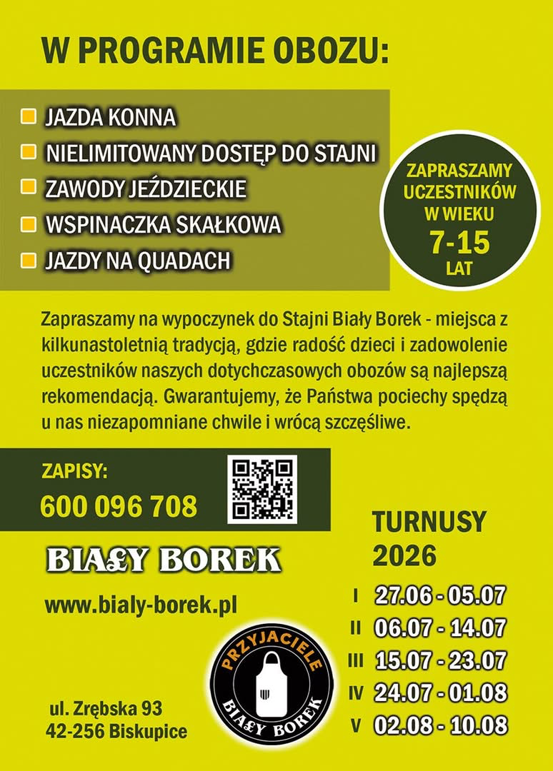 Jazda konna, zawody jeździeckie, wspinaczka skałkowa i quady. To tylko niektóre, choć najważniejsze atrakcje obozów młodzieżowych w Stajni Biały Borek w Biskupicach. Ośrodek specjalizujący się głównie jeździe konnej dzieci i młodzieży organizuje letnie obozy już od kilkunastu lat.