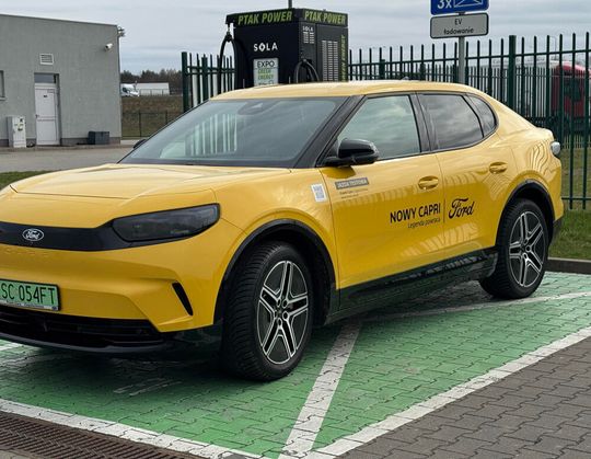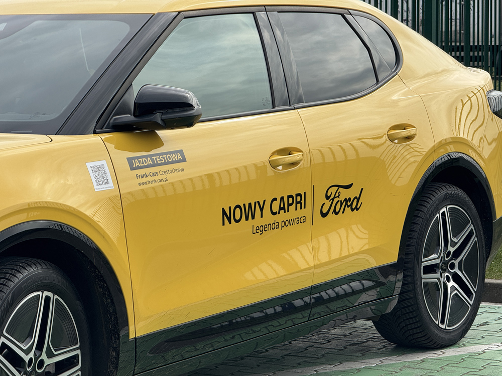 Frank-Cars Częstochowa dealer Forda do dealer który chętnie udostępnia nam samochody demo do testów redakcyjnych. W ub. roku jeździliśmy już Fordem Explorerem, teraz firma poprosiła nas o test Forda Capri. Samochody technicznie identyczne, Capri nawiązuje nazwą do kultowego Forda Capri który zadebiutował w roku 1968 i był produkowany do 1986r (Capri III generacji). Dzisiejszy Ford Capri występuje podobnie jak Ford Mustang Mach-E wyłącznie w wersji elektrycznej, za to większą baterią 77-79 kWh w wersji z napędem na tył na aż 627 km zasięgu. Technicznie bliźniaczy dla Capri Ford Explorer występuje jeszcze jako hybryda. Imponujące są też inne parametry napędu elektrycznego Forda Capri. Najmocniejsza wersja AWD (dwa silniki, napęd na 4 koła) oferuje aż 340 KM i 679 Nm oraz przyśpieszenie nieco ponad 5 sekund do setki. Zasięg z baterią 79 kWh do 692 km. Zasięg największy z tą baterią osiąga wersja RWD (napęd na tył) i mocy 280 KM do 627 km.