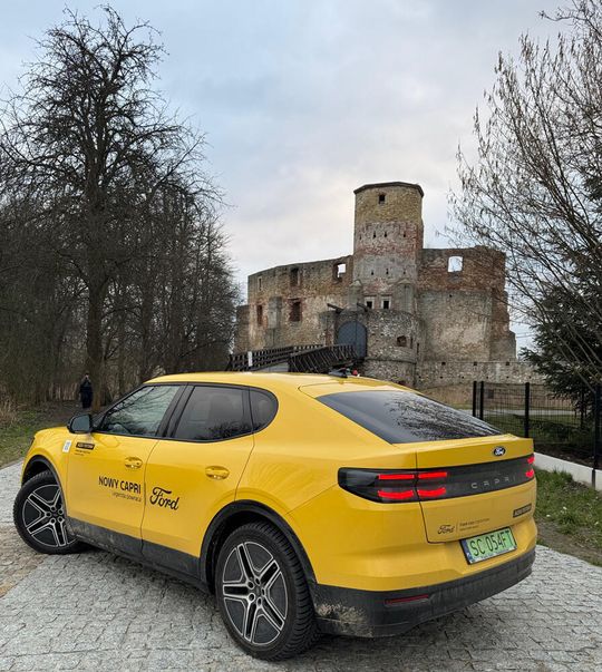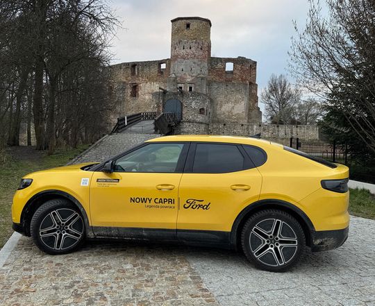 My przez kilka dni jeździliśmy najsłabszą wersją Forda Capri z silnikiem o mocy 170 KM i baterii 52 kWh. Już ta moc i rewelacyjny tylny napęd daje niespotykane w samochodach z silnikami spalinowymi wrażenia z jazdy. Przyśpieszenie 8,7 (Capri z rocznika 2026 mają mieć je poprawione do 8 sekund, i zasięg lepszy o dodatkowe 60 km). Samochód odebraliśmy w czwartek z salonu Frank-Cars i od razu dylemat. W piątek do Warszawy na targi motocyklowe jechać elektrycznym Capri, czy motocyklem który od września cieszy naszą redakcję czyli Honda Gold Wing Tour? Ten artykuł w ogromnej części skupia się na kosztach eksploatacji samochodów elektrycznych w porównaniu do benzynowych, więc porównajmy: Honda Gold Wing Tour pojemność silnika 1833 ccm, spalanie ok. 5,6 L/100km. Przy cenie 98 powyżej 9 złotych, wyjazd na Warsaw Motorcycle Expo w Nadarzynie będzie kosztował 227 złotych. Patrzymy jeszcze na pogodę. Niestety niepewna. Jedziemy więc elektrycznym Fordem Capri 170KM, z najmniejszą baterią. Samochód w pełni naładowany pokazuje zasięg 370 km. W ruchu miejskim będzie to ponad 400 km, algorytm Forda nie dolicza „na starcie” energii odzyskanej. Ale przed nami 230 km, głównie autostradą, czyli trasa dla elektryka najmniej korzystna. Jaki będzie zasięg? Jedziemy raczej nie przekraczając 130 km/h. Zużycie prądu osiąga 21 kWh, a komputer pokazuje prędkość średnią równe 100 km/h. Wjeżdżając pod ładowarkę już na Ptak Expo mamy jeszcze 140 km zasięgu, co oznacza, że jadąc nawet z autostradową (bez szaleństw) prędkością mamy szansę przejechać ok. 360 km. Z tą baterią wynik rewelacyjny. Ładujemy w 15 minut materię do zasięgu 280 km za 80 złotych. Po kilku godzinach oglądania, rozmów, poznawania nowych ludzi (motocykle łączą!) powrót do domu. Tym razem postanowiliśmy Forda Capri w ogóle nie oszczędzać. Na odcinkach z ograniczeniem do 140 km/h było…. Powiedzmy tyle, że jechaliśmy „mniej więcej” zgodnie z z przepisami. Do domu po przejechaniu 230 km zużywając średnio 26 kWh/100 km, dojeżdżamy na rezerwie, z zasięgiem 20 km. Wyjazd do Warszawy i z powrotem elektrycznym Fordem Capri kosztował nas nie więcej jak 80 zł. Wynik pokazuje, że gdyby był to Ford Capri z baterią 77 KW, bez problemu prądu starczyłoby na całą trasę bez konieczności ładowania po drodze. Czyli koszt przejechania 460 km wyniósłby zero, na najwyżej 46 złotych.