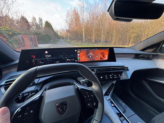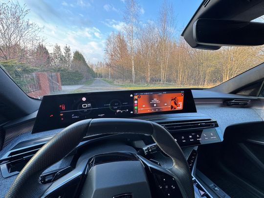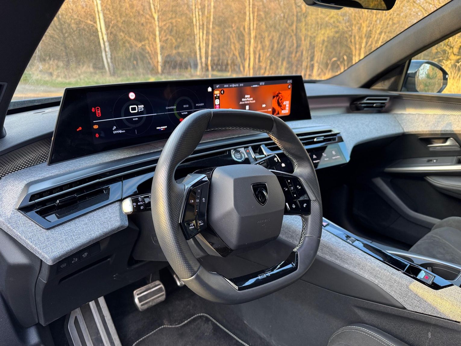 Zwraca uwagę też ciekawy panoramiczny wyświetlacz „wszystkiego” od danych o prędkości po nawigację i inne systemy. Całość sprawia bardzo dobre wrażenie estetyczne, ale trochę zbyt wiele i nieco chaotycznych jest informacji naraz. Nie mieliśmy czasu aby poszukać innego rozłożenia wyświetlanych funkcji, bardziej „oszczędnej” wersji. Zrozumienie jak to działa, jak się ustawia nie jest intuicyjne, wymaga dłubania w menu. To niestety problem wielu współczesnych samochodów, które w mnogości funkcji wprowadzają trochę chaosu. Do rozwiązań z Peugeot 3008 trzeba się dłużej przyzwyczajać, a zaznaczę, że nie jest to marka w redakcji nam obca. Przez 2 lata w najmie używaliśmy naszym zdaniem jeden z najbardziej udanych samochodów z lwem na masce, był to Peugeot e208 a więc z napędem 100% elektrycznym. Używaliśmy e208 w latach 2022-24 i tak się zdarzyło niedawno, że gdy na serwis (szkoda z OC sprawcy) trafił nasz Fiat 600e do firmy Tandem+ z Sosnowca (ul Zuzanny 36) na 2 tygodnie dostaliśmy Peugeot e208 co nas bardzo ucieszyło. Jazda elektrycznym Peugeotem e208 przypomniała nam jak bardzo fajny jest to samochód: nieprawdopodobnie zrywny, zasięg na baterii poprawiony do 315 km (nasz miał 280 km zasięgu), idealny w prowadzeniu, wygodny.