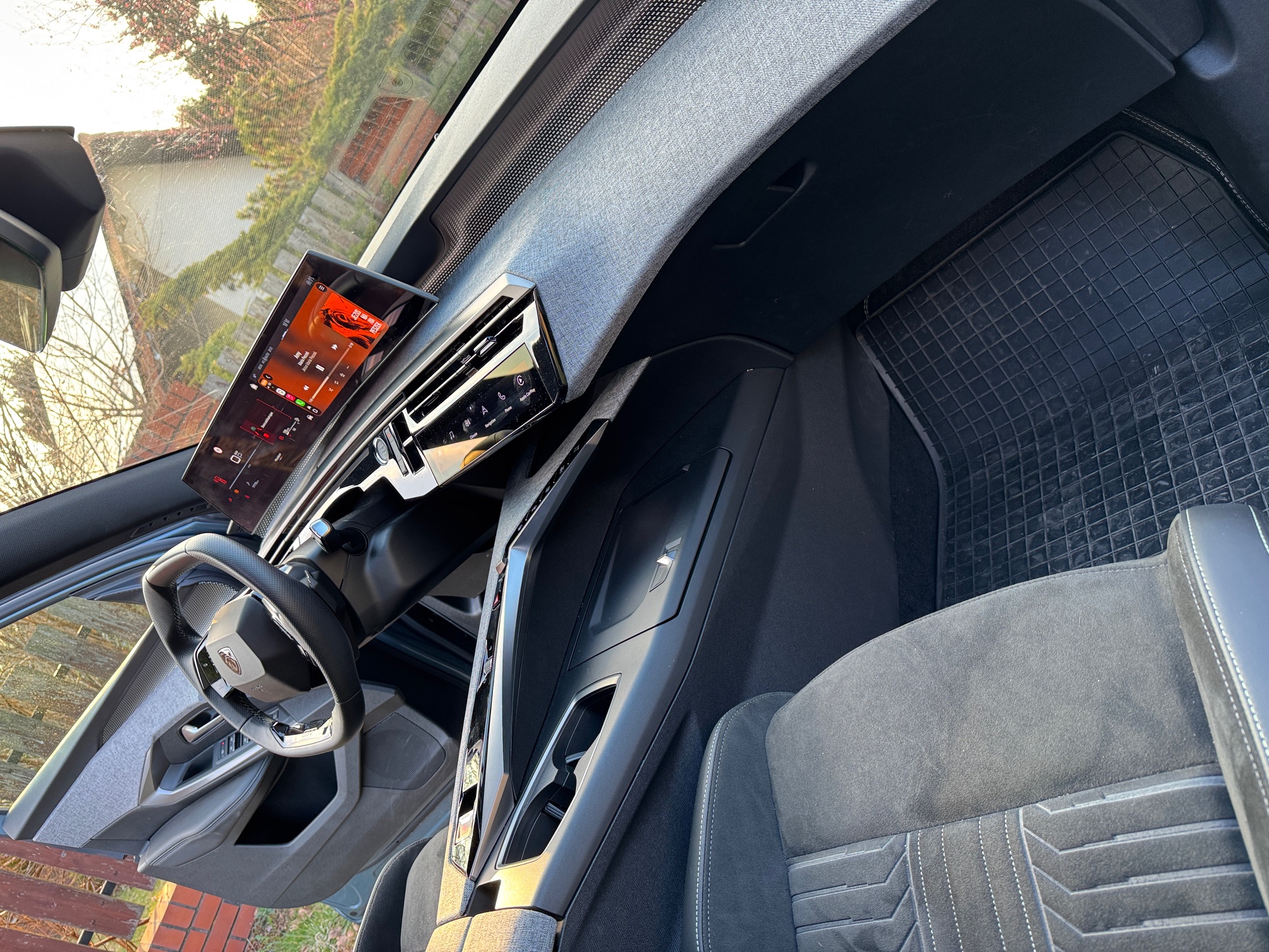 Zwraca uwagę też ciekawy panoramiczny wyświetlacz „wszystkiego” od danych o prędkości po nawigację i inne systemy. Całość sprawia bardzo dobre wrażenie estetyczne, ale trochę zbyt wiele i nieco chaotycznych jest informacji naraz. Nie mieliśmy czasu aby poszukać innego rozłożenia wyświetlanych funkcji, bardziej „oszczędnej” wersji. Zrozumienie jak to działa, jak się ustawia nie jest intuicyjne, wymaga dłubania w menu. To niestety problem wielu współczesnych samochodów, które w mnogości funkcji wprowadzają trochę chaosu. Do rozwiązań z Peugeot 3008 trzeba się dłużej przyzwyczajać, a zaznaczę, że nie jest to marka w redakcji nam obca. Przez 2 lata w najmie używaliśmy naszym zdaniem jeden z najbardziej udanych samochodów z lwem na masce, był to Peugeot e208 a więc z napędem 100% elektrycznym. Używaliśmy e208 w latach 2022-24 i tak się zdarzyło niedawno, że gdy na serwis (szkoda z OC sprawcy) trafił nasz Fiat 600e do firmy Tandem+ z Sosnowca (ul Zuzanny 36) na 2 tygodnie dostaliśmy Peugeot e208 co nas bardzo ucieszyło. Jazda elektrycznym Peugeotem e208 przypomniała nam jak bardzo fajny jest to samochód: nieprawdopodobnie zrywny, zasięg na baterii poprawiony do 315 km (nasz miał 280 km zasięgu), idealny w prowadzeniu, wygodny.