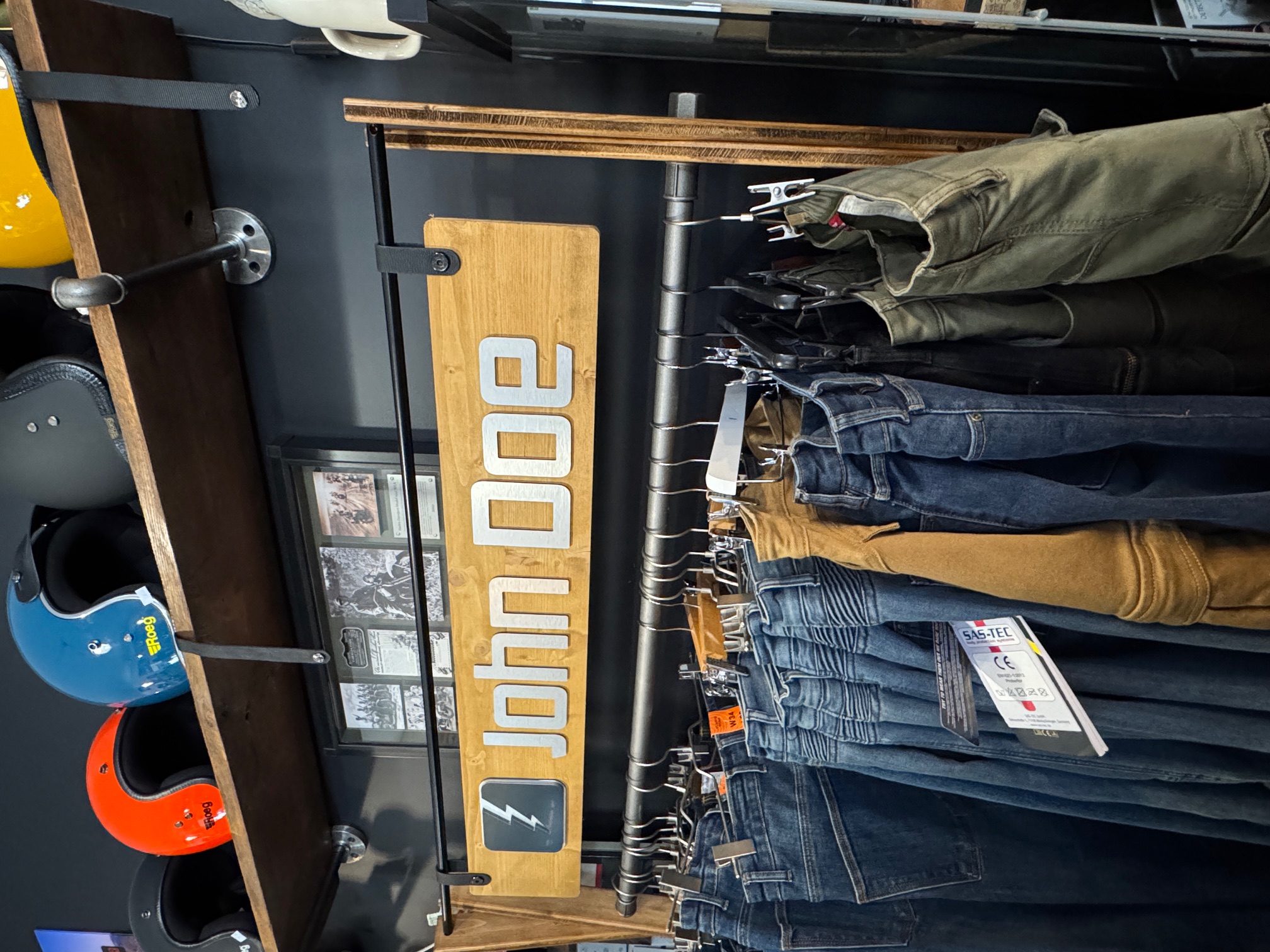Niedawno, odwiedziliśmy DeMotos ponownie i choć nie zawsze coś kupimy, to zawsze coś nam się spodoba. Sklep w ofercie ma ciekawe, wybrane kolekcje kasków jak Bell, John Doe. Zwłaszcza ta druga marka, godna jest polecenia ze względu na ciekawą, klasyczną kolekcję odzieży (spodnie, kurtki) w klasycznym stylu, jako vintage. W DeMotos znajdą coś dla siebie miłośnicy Cafe Racerów.