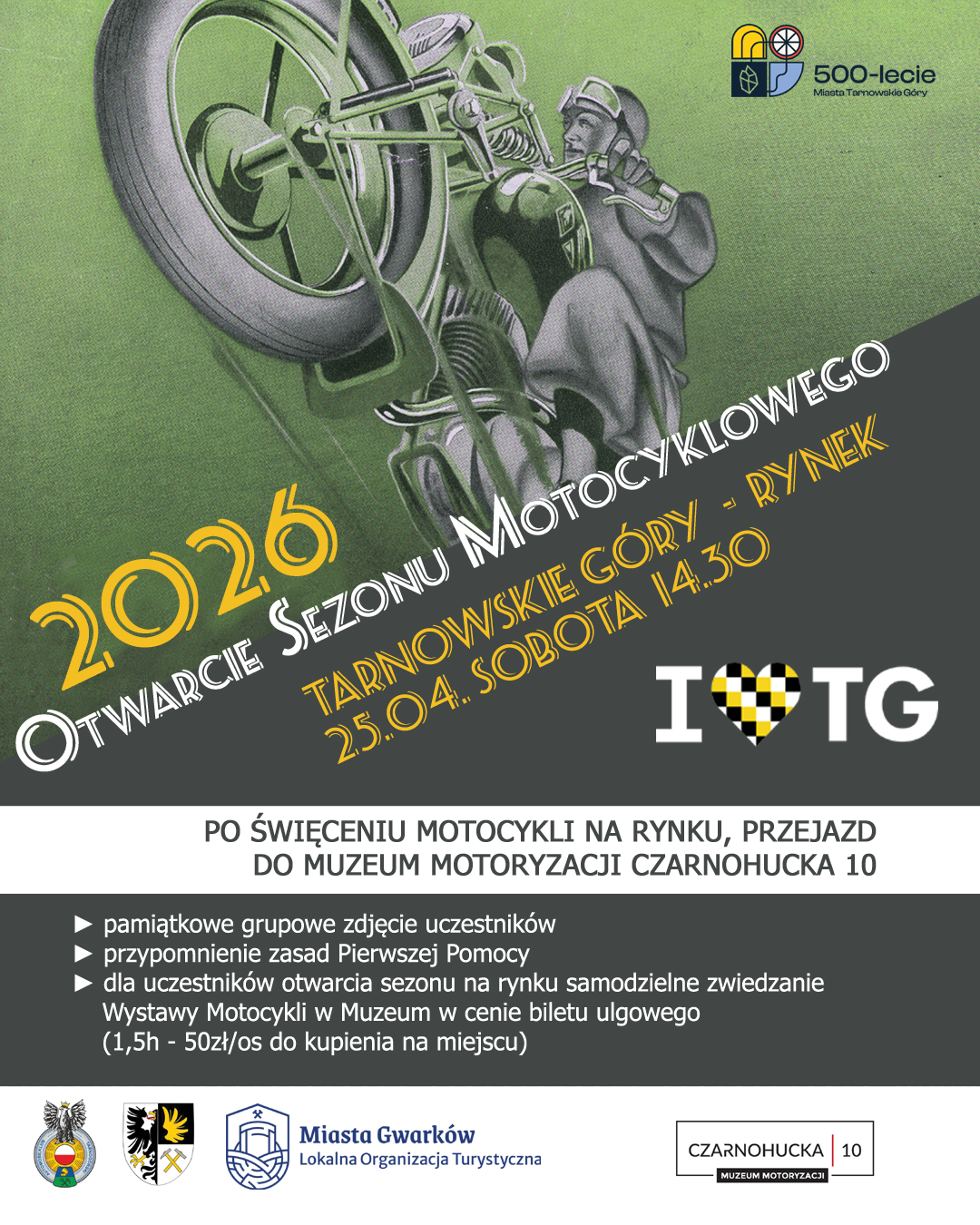 "W tę sobotę solidnie czyścimy motory i o godzinie 14:30 widzimy się na Tarnogórskim Rynku, bo oficjalnie otwieramy sezon motocyklowy!