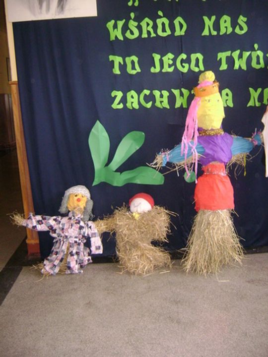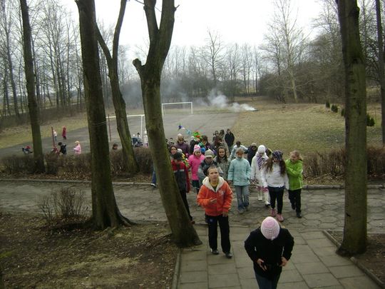 Podczas poniedziałkowych uroczystości w szkole odbył się m.in. pokaz słomianych postaci symbolizujących złą zimę. Każda z klas i oddziałów przedszkolnych przygotowały swoją wersję surowej i nie chcianej już pory roku, wykorzystując do tego przeróżne materiały. Nie brakowało także piosenek o wiośnie, okraszonych tańcem.