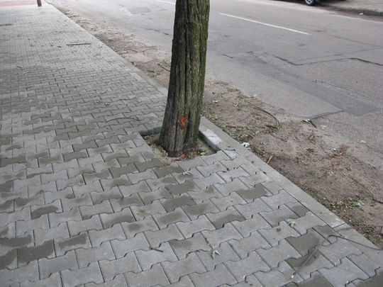 Po czterech dniach sprawdziliśmy, czy urzędnicy interweniowali w sprawie drzew. – Nikt u nas nie był – powiedział jeden z robotników pracujący przy remoncie. Wbrew zapewnieniom kierownika, drzewa dalej pozostają obudowane szczelnie kostką brukową. Także i kolejne, wraz z postępem prac, podzielą ich los. (pmer)