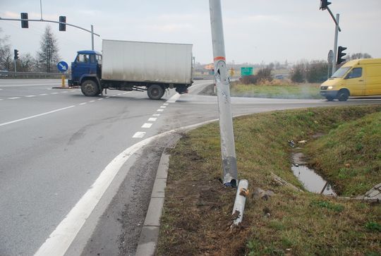 Być może kierowca ciężarówki był już zmęczony jazdą, kiedy uderzył w sygnalizację świetlną. Do zdarzenia doszło bowiem przed godziną 5.00 rano. W wyniku uderzenia naruszona została konstrukcja urządzenia, z opraw powypadały także szklane osłony samych świateł. O tym, że „wandal na kółkach” odjechał z miejsca zdarzenia policjantów powiadomił inny, przejeżdżający przez Koziegłowy użytkownik „jedynki”.