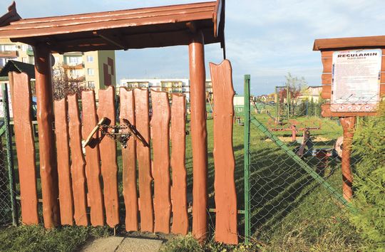 (Myszków) Prognozy synoptyków na listopad są bardzo optymistyczne. Choć ranki i wieczory są dość chłodne, w ciągu dnia przynajmniej do połowy miesiąca ma być piękna, słoneczna pogoda. Podobna aura towarzyszyła końcówce października. Nic dziwnego, że z pięknej jesieni chcą korzystać wszyscy, w tym dzieci, także te najmłodsze, które rodzice zabierają na znajdujące się w mieście place zabaw. Jedna z naszych czytelniczek bardzo się jednak zdziwiła, kiedy korzystając ze sprzyjającej pogody wybrała się z córeczką na plac zabaw na tzw. „Kamiennym kręgu” przy ulicy Sikorskiego. Furtkę wejściową oplatał gruby łańcuch.