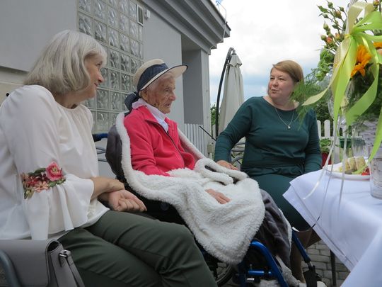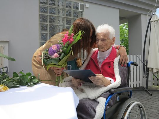 (Myszków) Pani Janina Bębenek 26 czerwca 2021 obchodziła setne urodziny. Od początku czerwca jest pensjonariuszką Domu Seniora Zapiecek, ale jeszcze do niedawna mieszkała samodzielnie w w kamienicy przy ul. Wolności w Myszkowie. Pani Janina niestety przeżyła już całe swoje rodzeństwo, a nawet własne dzieci, więc w uroczystości urodzin uczestniczyły jej wnuczki i prawnuczki: -Babciu, życzymy ci 200 lat, ale też tego, żebyś doczekała pra-prawnuków! -mówiła wnuczka Eliza Motyl, która uroczyste urodziny stuletniej babci świętowała wraz z mężem i córkami. Z najbliższej rodziny urodzinach Janiny Bębenek w Zapiecku wzięła jeszcze udział Dorota Radkowska, wnuczka siostry jubilatki.