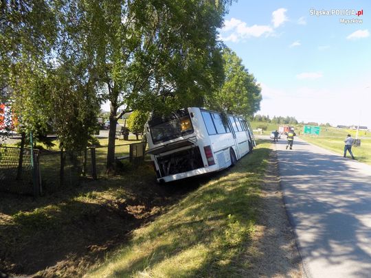 (Rzeniszów, gm. Koziegłowy) Kierowca autokaru zjechał na lewy pas, a następnie do rowu. Pojazdem podróżowało kilku pasażerów, którzy nie zostali poszkodowani. Policja wyjaśnia szczegółowe okoliczności tej kolizji.